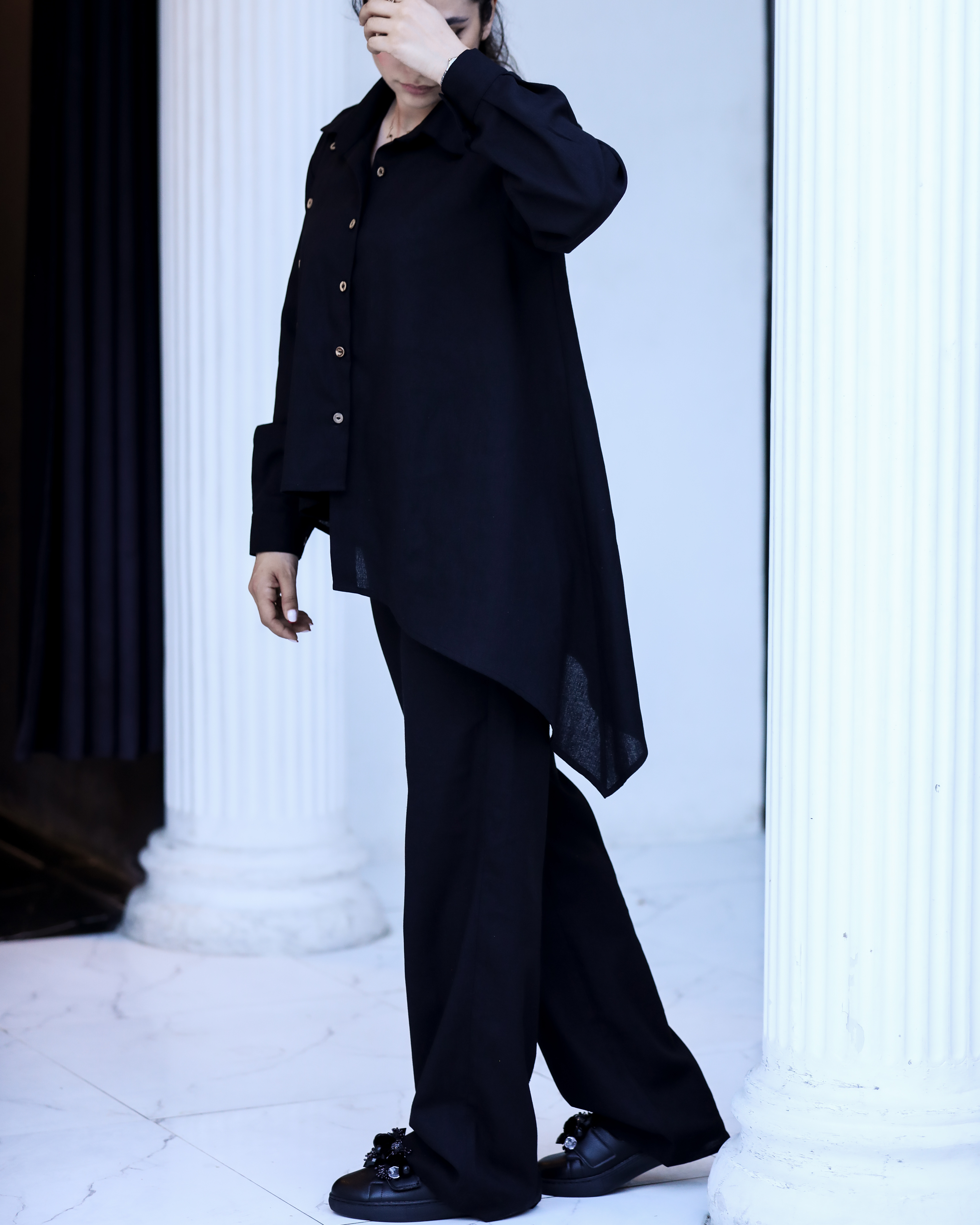 ست شومیز و شلوار لینن زنانه، دوخته شده از پارچه لینن طبیعی، سبک و تنفسپذیر، مناسب فصلهای گرم سال. طراحی ساده و شیک این ست، آن را برای استایل روزمره یا نیمهرسمی ایدهآل میکند و با ترکیب شلوار و شومیز، ظاهری خنک و مینیمال ایجاد میکند.