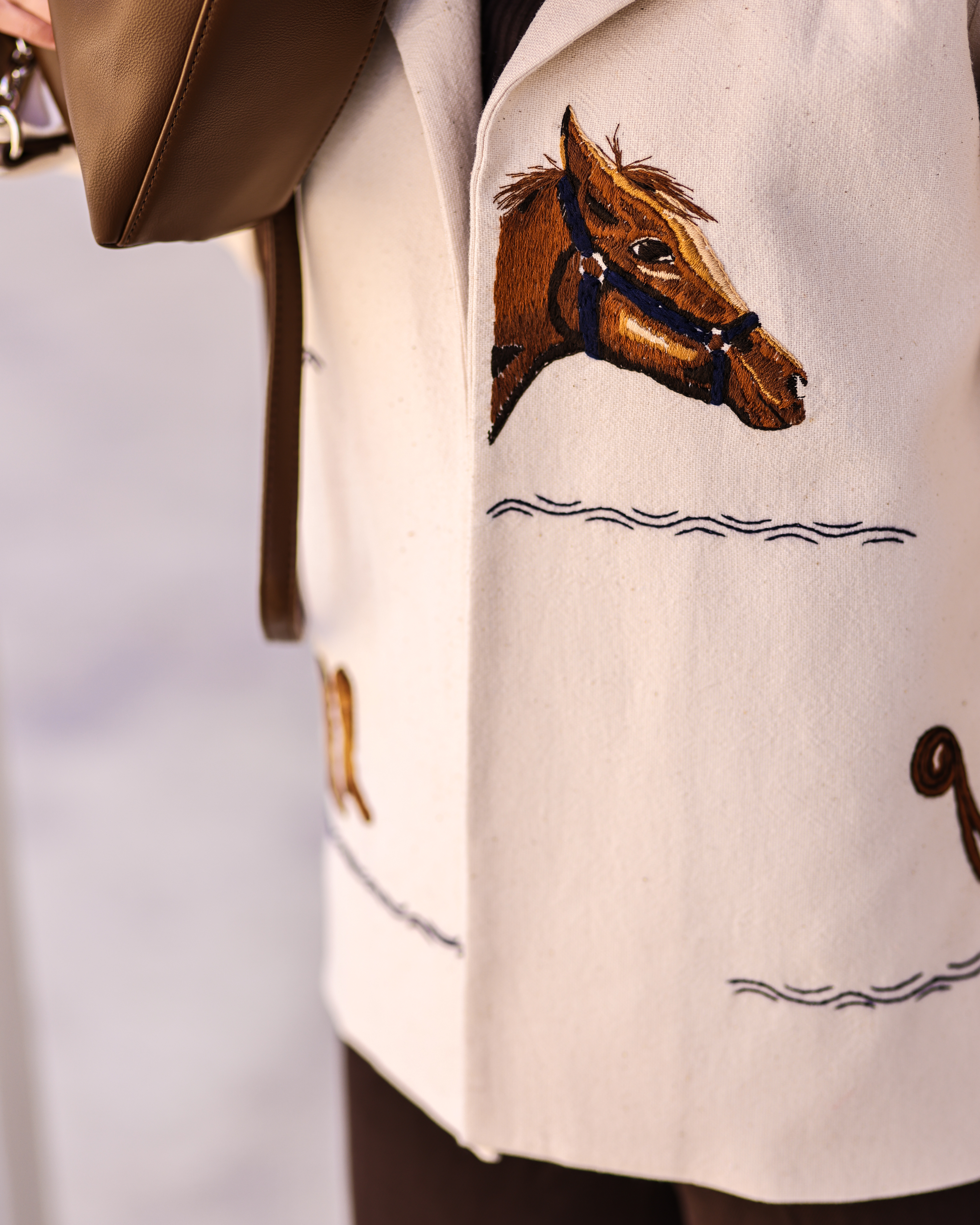 کت دستدوز طرح اسب و سوارکاری | پارچه لینن ازبک